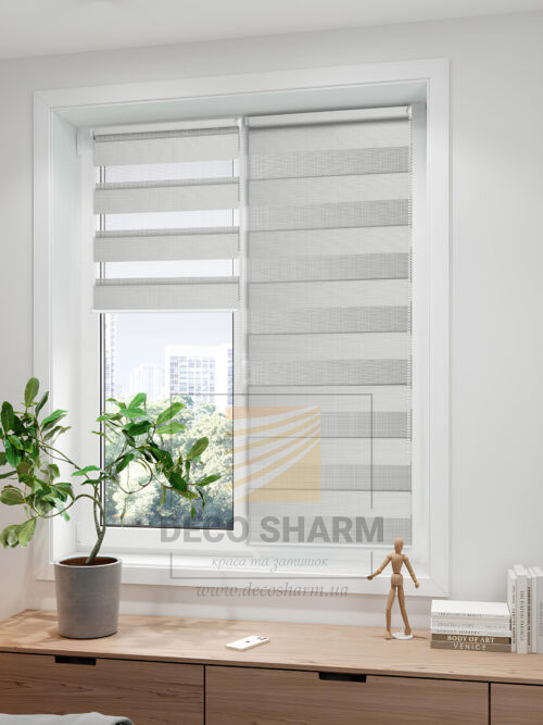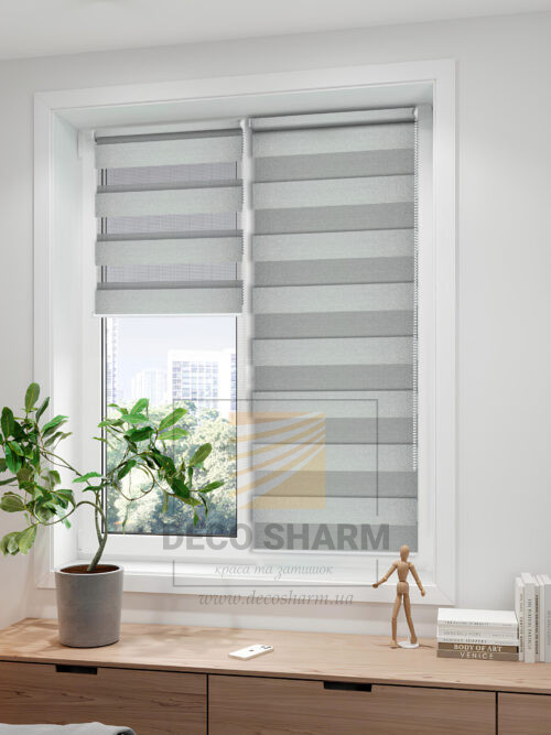 Рулонна штора день-ніч Paradise Сіро-білий